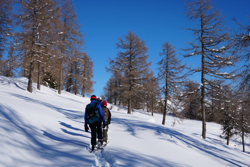 Das leicht hügelige und bis weit oben bewaldete Gelände eignet sich im unteren Bereich auch hervorragend, um mit Schneeschuhen erkundet zu werden.